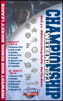 Des Moines Oak Leafs and Omaha Jr. Lancers represented the MHSHL at the USA Hockey High School National Championships-Division II. After both teams advanced to the semifinals, the two teams faced each other with Des Moines coming out on top 3-2 in overtime. Des Moines then fell short in the championship game by a score of 6-3 against Prep Hockey of Illinois. |